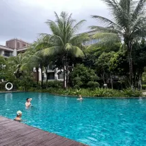 Прекрасный номер, чистый, просторный, современный дизайн, со всем необходимым, включая большой холодильник и стиральную машину. Сам комплекс зеленый, уютный, большой бассейн (нужна шапочка для плавания). Если знаете китайский язык - проблем никаких. До моря на такси 5 мин, пешком полчаса.