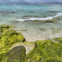 싼야는 푸른 하늘, 울창한 산, 아름다운 유리 바다가 있어 아름답습니다.