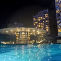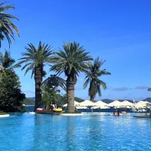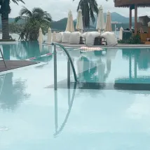 둘째는 수영장이에요. 여기는 총 세 개의 수영장이 있는데, 어린이 수영장 두 개와 성인 수영장 한 개가 JW 메리어트 공용 공간과 연결되어 있어요. 세 수영장 모두 각기 다른 매력이 있지만, 3층 수영장이 가장 예뻤어요. 수영장 물이 정말 깨끗했고, 수영장 옆에는 무료로 쓸 수 있는 소독된 타월과 튜브까지 비치되어 있었죠. 제가 전에 묵었던 어떤 호텔도 이곳만 못했습니다!
