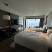 객실 오션뷰가 정말 좋았고, 다른 부분들도 매우 깨끗했습니다. 객실 정돈 직원분께서 저희 옷까지 깔끔하게 개켜주셔서 정말 칭찬받아 마땅하다고 생각합니다. 다만, 오션뷰 창문이 조금만 더 깨끗했더라면 완벽했을 거예요.