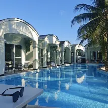 수영장이 크고 아이들이 좋아하고 가격도 저렴하고 상점에서 조금 멀고 마을에 있지만 환경은 말할 것도 없고 시설이 좀 낡았을 수도 있고 너무 많을 수도 있어요 머무르는 사람들, 욕실의 검은 벽과 바닥 타일은 선택할 필요가 없는 흰색 타일로 교체될 수 있습니다. 전반적으로 매우 좋습니다.