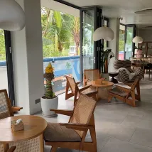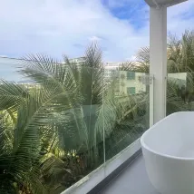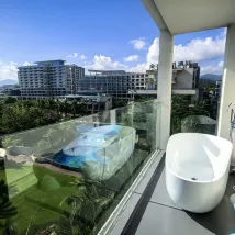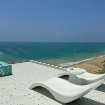 공공장소의 지원 시설도 훌륭합니다. 최상층의 야외 전망대에는 오후티를 즐길 수 있는 테이블과 의자가 마련되어 있습니다. 아래층에는 해변 의자와 파라솔이 있는 해변이 있어 물놀이를 하거나 백일몽을 꾸기에 매우 편리합니다.