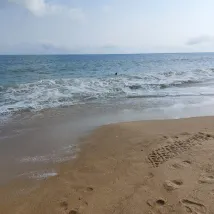 바다가 아주 가까워요! 해변에는 사람이 거의 없어서 마치 우리만 있는 곳인 것 같은 느낌이 들었습니다.