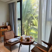 이 객실은 고급스러운 장식과 목재 가구로 꾸며져 있어 매우 분위기가 좋습니다. 주인의 세심한 배려가 모든 세부 사항에서 느껴집니다. 위생 상태도 흠잡을 데 없고, 침구는 부드럽고 피부 친화적이며, 욕실은 깨끗하고 냄새가 없고, 발코니에 있는 라운지 의자도 깨끗이 닦여 있습니다.