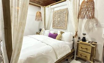 Our Villa features a large second floor master suite with king size bamboo bed, Bali style furnishings, A/C, ceiling fan, indoor/outdoor seating, large full bath with rain head and handheld shower fixtures, cedar bathroom cabinet with stone sinks, outdoor free standing bathtub overlooking the ocean, teak wood ceilings.not to mention, a safe to place your valuables, our hotel grade white linens, towels, robes, and shower gels and shampoo. Enjoy a direct unobstructed view and sound of the waves from the large second floor balcony.