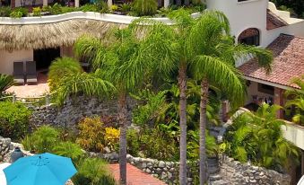 Las Flores, pictured in our photo gallery, has its own private entrance, large terrace with dining table for 4 and chaise lounge chairs, and overlooks the bay of Sayulita, the jungle, and our beautifully landscaped gardens, providing indoor/outdoor living in a lush garden setting.