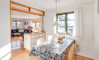 Single-family house, built in 1979. 150 m from the sea. Private: natural state property 819 m2. Terrace (50 m2), barbecue, children's playground. In the house: sauna, washing machine. Parking at the house. Grocery 8 km. The owner does not accept any youth groups. "Annabell" - 150m from the sea", 3-room house 79 m2. Object suitable for 6 adults + 1 child. Living room with TV. 1 room with 1 double bed. 1 room with 2 beds. 1 room with 2 beds. Kitchen (oven, dishwasher, 4 ceramic glass hob hotplates, microwave). Shower/WC. View of the sea. Facilities: children's high chair, baby cot. Internet (WiFi). Please note: non-smokers only. Bookings accepted for holiday purposes only. 813-190759