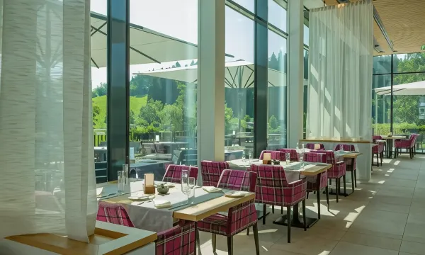 Very beautiful hotel in a great location from where you can walk to some nice sightseeing places (for example Hasenreuter Wasserfälle). Also very well equipped high quality fitness studio, lovely swimming pool, very nice and clean rooms, beautiful restaurant with a view and top quality delicious food.