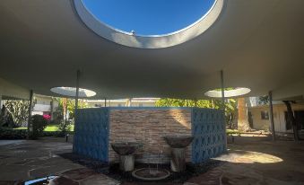The community amenities include a sparkling pool ideal for a refreshing swim, and a BBQ grill area for outdoor cooking and gatherings. Patio seating available for dining! The unique vibe & culture at the Palms originates from the community’s private courtyard that centers intimacy and comfort, the atmosphere that mid-century resorts were designed to create. Lush oasis-inspired tropical landscaping, the central heated swimming pool, wide open spaces and decorative designs that provides the resort lifestyle. Built first in the late 50’s as a motor inn resort, the Palms was one of the first boutique retreats in America. Hollywood A-listers flocked to these garden resorts on the block for vacation, including Alfred Hitchcock, Robert Wagner, and Marilyn Monroe. An emphasis on indoor-outdoor living is clearly felt at the palms. Sliding glass front resort doors and terraces allow all units and residents to fully experience the courtyard that opens inward. Dramatic lighting casts focus on the pool, entryways and landscaping. Period artwork cast into the walls, along with intricate textures and planters showcase the intersection of art and living.