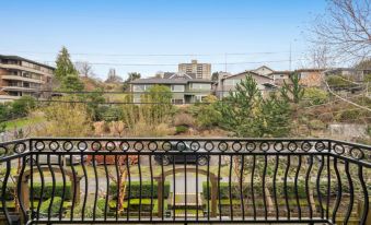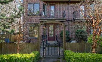 Welcome to Kinnear Tudor Townhouse on Queen Anne, a three-story home blending Tudor and Contemporary charm. Located in the heart of Queen Anne and just steps from iconic Kerry Park, this makes an ideal home base for exploring Seattle! Neutral tones and warm decor throughout create a comfortable and relaxing stay. Enjoy the cozy fireplace, a garden with outdoor furniture, and a private balcony with scenic views of Puget Sound.