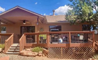 GREAT LOCATION! This is where you want to be!! We have many Raving fans and happy guests! We are 5 Star Super hosts on another platform. Experience Sedona in our tastefully furnished residence that offers an artistic interior with ample natural light, desks for remote work, 75" Smart TV, as well as a deck that's perfect for sunset meals! Whether you're here to visit Cathedral Rock, hike the Airport Mesa, do a yoga retreat or explore the restaurants, galleries and trails within walking distance, an ideal Sedona retreat! Hidden red rock trials right outside your door! The space: