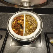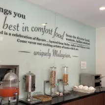 조식 패키지를 이용했는데, GF(글루텐 프리) 레스토랑에서 제공됩니다. 나시/미고렝 세트 중 선택할 수 있고, 1끼가 제공됩니다. 토스트, 시리얼, 사이드 디쉬(카레 퍼프와 사모사), 과일이 무제한으로 제공됩니다. 차, 커피, 주스도 있어요.