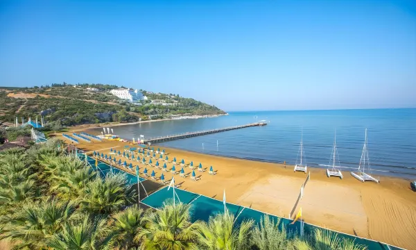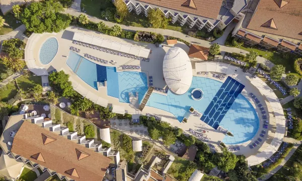 Perfect family holiday in Turkey! (Visited with kids aged 7 and 9) We stayed here for a week in early July 2025 and honestly, it was great — a real 5/5 for what it is. The place is quiet, full of flowers, the staff are all super friendly and helpful, food is good and varied, and there’s a lot to do — especially the fantastic aquapark. The good stuff: Staff: Everyone was so nice and smiling all the time, and most speak good English. We really felt welcome from day one. I’d say it’s what makes this resort stand out from others we’ve visited in Turkey. Management can be proud — this team really shows the best side of modern, relaxed Turkey. Special thanks to the guest relations team, and to Egehan from reception who even helped us find our way in town after his shift. Cleanliness: Everything was spotless, from the rooms to the common areas. The cleaning staff are constantly at work and it really shows. Rooms: Modern, comfy, and well thought out. The bathroom was large and perfectly clean. Beds were comfortable. Minibar refilled every day (beer, soda, water) — nice touch! Food: Big buffet with loads of choice and several live-cooking stations that change every day. Breakfast and dinner are amazing; lunch is a bit simpler but still good. Pools: Large, never overcrowded, always clean, and lots of lifeguards around. Location: Only 15 minutes by Dolmus from Kusadasi — lovely city and definitely worth visiting. Ephesus isn’t far either, and there are plenty of boat trips and tours to Pamukkale. What could be better: The evening shows/music are way too loud. It’s common in resorts, but still — not ideal when you have kids or want to sleep early. Not enough tables at lunchtime in the main restaurant. Desserts are very traditional Turkish style — lots of colorful sweet stuff, but not really what most Europeans enjoy Luckily there’s always ice cream! Cocktails by the pool aren’t great… but the ones at the reception bar are! Family rooms (for 4) only have two chairs on the balcony. A bit more space inside would have helped for luggage and clothes. Drinks and snacks at the waterpark aren’t included in the all-inclusive (a bit expensive), but there’s a hotel bar right next to the entrance, so not a big deal. Bad points: Honestly? None. To sum up: We totally recommend this place. Great value, great people, perfect for kids who love water and fun. You can book without hesitation — we’d happily come back!
