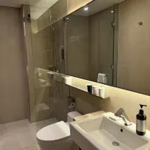 매우 편리합니다. 공항 버스에서 내려서 바로 앞으로 조금만 걸어가면 됩니다. 직원들은 영어를 잘합니다. 1박당 커피 쿠폰을 주는데, 2층 카페에서 필요할 때마다 사용할 수 있습니다. 객실은 크지 않지만 공간이 넉넉하고 모든 것이 완비되어 있습니다. TV는 유튜브와 넷플릭스를 시청할 수 있는 삼성 스마트 TV입니다. 옷장과 매일 제공되는 생수가 있습니다. 욕실에 헤어드라이어가 있는데 보통 호텔에서는 잘 작동하지 않지만 이곳은 좋습니다. 헤어드라이어를 직접 가져와도 되고 필요하지 않습니다. 고무 슬리퍼가 있는데 그다지 편하지는 않지만 괜찮습니다. 전반적으로 그만한 가치가 있습니다. 호텔 앞 왼쪽에는 공차, 오른쪽에는 아이작 샌드위치가 있습니다. 올리브영 2층에서 왼쪽으로 걸어가세요. 말차 가게인 메차가 아주 맛있습니다. 꼭 드셔보세요. 오른쪽으로 걸어가면 길을 건너 남대문 시장에 도착합니다. 다양한 음식점이 있습니다.
