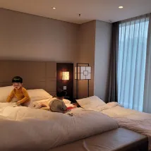 청결하고 깨끗해서 굉장히 좋았지만 전철 타고 다니기에는 조금 먼 거리여서 그게 아쉽다고 생각해야 할까 전체적으로는 서비스라든지 다 좋았던 것 같습니다