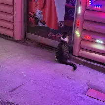 주변은 마마상 스타일 가게들이 즐비해서 정말 멋져요. 길 건너편에는 정말 귀여운 새끼 고양이도 있어요.