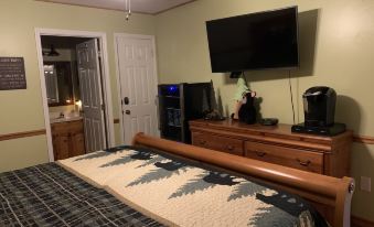 Welcome to Kitten's Cabin. This charming cabin has 2 master bedrooms with bathrooms, cable and Smart TV's so you can enjoy your choice of cable tv or log onto your Netflix, Hulu, or even Amazon Prime while you relax in a comfortable king size bed. The main floor master bathroom includes a whirlpool tub with a large picture window view of the mountains for relaxing after a long day of shopping.