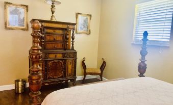 This location is excellent! So close to the antique stores, retail shopping, restaurants, entertainment! The neighborhood is quiet and seems safe, as we’ve had no problems. Beautiful backyard with a creek in the back. Pictures on listing are accurate. The washer and dryer were a bonus to have included as well. Highly recommend this house for a vacation stay!