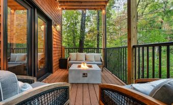 Oversized deck offers forested views. Relax under the stars while enjoying the outdoor wood fire pit. 🪵🔥