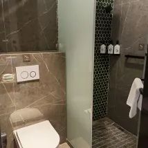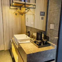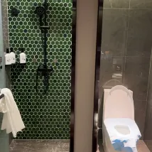 시설: 욕실은 건식과 습식 공간으로 구분되어 있고, 변기와 욕실이 두 개의 독립된 공간으로 되어 있어서 좋습니다! 테이크아웃을 주문할 때 로봇이 음식을 배달해 달라고 메모할 수 있는데, 이는 여성끼리 여행하는 경우 매우 권장됩니다.