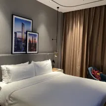 콘서트를 보러갔어요. 홍커우 축구 경기장과 매우 가까워서 지하철로 한 정거장 거리에 있고, 도보로는 20분 거리입니다. 매우 편리하죠. 3호선 지하철 출구에서 도보로 1~2분 거리에 있습니다. 호텔은 매우 깨끗하고 시설도 좋습니다. 여름용 린넨 슬리퍼는 품질이 매우 좋고, 세면도구도 좋습니다. 체크인을 했을 때, 프런트 데스크 직원은 제가 예약한 방이 경전철에 가까운 쪽에 있다고 미리 알려주었습니다. 밤에 돌아왔을 때는 경전철이 끝나 있었고, 아침에 체크아웃했을 때는 운행하지 않았고, 잠을 잘 수 있었기 때문에 조용한 방으로 업그레이드하기 위해 차액을 지불하지 않았습니다. 프런트 데스크 직원이 적극적으로 더 큰 객실로 업그레이드해주었습니다. 전반적으로 매우 만족스럽고 비용 효율성도 매우 좋습니다.