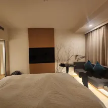 2024년에 새롭게 단장하여 오픈했습니다. 전체적인 디자인은 모던 미니멀리즘 스타일이며, 따뜻한 얼스톤(earth tone) 색감과 우드 가구가 조화를 이루어 편안하고 아늑한 숙박 분위기를 선사합니다.