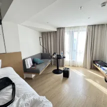 호텔에서 즐거운 시간을 보냈습니다. 위치도 좋고, 24시간 피트니스 센터와 셀프 서비스 세탁실도 있습니다. 프런트 데스크 직원도 친절하고, 귀여운 로봇들이 물건을 배달해 줍니다. 다시 묵을 의향이 있습니다.