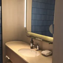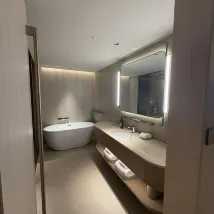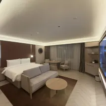 매우 만족스럽습니다. 객실 시설도 매우 새롭고, 스마트 변기, 커피 필터 등이 갖춰져 있어서 기분이 매우 좋습니다. 가장 놀라운 점은 로비에 손님들이 업무를 논의할 수 있는 별도의 공간이 여러 개 마련되어 있고, 무료로 차와 생수가 제공된다는 점입니다. 강력 추천합니다!