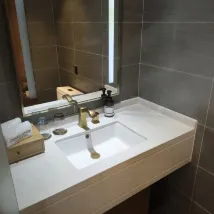 방이 깨끗하고, 구조가 편안하고, 세면대가 반개방형이고, 건건식 분리가 잘 되어 있고, 컨디셔너와 바디로션도 제공됩니다. 체크인을 하면 프런트에서 커피 교환권을 줬는데, 1층 바에서 따뜻한 아메리카노 한 잔으로 교환할 수 있다.