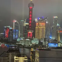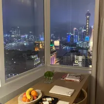 뷰는 기대했던 만큼 아름다웠지만, 홍보 사진에서 흔히 보던 동방명주 타워가 객실에서 크게 보이는 압도적 풍경은 아니었다. 분명 야경 자체는 훌륭했고, 상하이 도심 특유의 조명이 만들어내는 분위기 역시 멋졌다. 그러나 검색하면 흔히 나오는 ‘동방명주가 대형 창 너머로 꽉 차게 보이는’ 그 사진과는 다소 거리가 있었다. 각 객실의 배치나 층수에 따라 차이가 있겠지만, 숙박 전 미리 기대했던 시그니처 뷰를 상상했다면 약간 실망할 수도 있겠다. 그래도 상하이 다운 야경을 느끼기엔 충분한 수준이었고, 창가에 앉아 조용히 와인을 마시기엔 나쁘지 않았다.