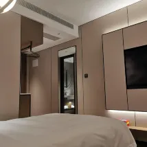 호텔은 매우 깨끗하고 침대도 매우 편안해서 잘 수 있었습니다. 청소부도 매우 능숙했습니다. 호텔 시설은 완벽하고 와이파이도 빠릅니다. 로봇이 식사를 배달하고 TV에 영상을 투사할 수도 있습니다. 저는 매우 만족합니다.