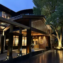 호텔은 3,000제곱미터의 면적에 자리 잡고 있으며, 중심에는 건조한 풍경의 안뜰이 있습니다. 하얀 모래, 푸른 소나무, 잉어 연못, 나무 다리 등의 요소들이 질서 있게 배치되어 있습니다. 계절마다 풍경이 달라지는데, 늦가을에는 붉은 단풍으로 더욱 우아함을 더합니다. 창립자는 15년간 일본에서 살았으며 일본 미학의 본질을 모든 디테일에 접목시켰습니다. 안뜰에서 객실까지, "안뜰과 집이 같다"는 디자인 콘셉트가 표현되어 마치 교토의 고택에 있는 듯한 느낌을 줍니다. 로비에 있는 거대한 수제 실크 그림, 다다미 다도 공간, 일본에서 구입한 도구 등은 일본적인 분위기를 더욱 살려줍니다.