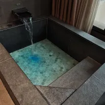 객실 내 프라이빗 온천은 단연 최고였습니다. 밤에 따뜻한 탕에 몸을 담그니 옆에는 무료 차와 배스솔트까지 세심하게 준비되어 있었고, 온몸의 피로가 눈 녹듯 사라지며 몸과 마음이 편안해졌습니다. 탕물도 매우 깨끗해서 안심하고 즐길 수 있었어요.