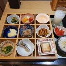 숙소 답변: 친애하는 고객 여러분, 온야도 와다니와 호텔에 머물러 주셔서 감사합니다. 또한, 일본식 세트 메뉴와 서양식 아침 식사를 즐겨 주셔서 감사합니다. 손님이 체크인하면, 집사가 주도적으로 아침 식사 메뉴를 소개해 드리고, 손님이 가장 좋아하는 요리를 선택하도록 도와드립니다. 1층에 있는 샹허징 다실에서 오전 8시부터 다음날 오전 10시까지 식사를 즐기실 수 있습니다. 재료의 조합, 분위기, 품질, 플레이팅 등 모든 디테일이 아름다움으로 가득 차 있습니다. 우리는 대부분의 손님이 식사 전에 휴대폰을 열어 아름다운 사진을 찍는 것을 봅니다. 유수 헤팅의 집사 제로 웨이팅 서비스는 호텔에 들어오는 모든 친구와 함께합니다. 저희는 최선을 다하고 있으며, 모든 투숙객이 유수 헤팅의 사려 깊음과 따뜻함을 느낄 수 있기를 바랍니다. 다시 방문해 주셔서 감사합니다!