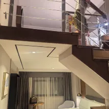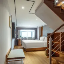 건물 외관의 계단은 좀 낡아 보였지만, 내부는 아주 훌륭하고 아늑했습니다. 특히, 빌려 볼 수 있는 책들이 있다는 점이 좋았고, 조식은 정말 최고였어요! 주말 푸둥 미술관 전시회 관람을 위해 이곳을 선택했는데, 미술관까지 거리가 가까워서 정말 편리했습니다.