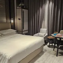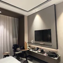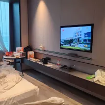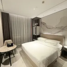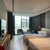 한국 귀국 전날 묵었습니다. 아침 새벽 6시 출발 비행기라 4시(젤 이른) 셔틀 탑승하는데 간단한 조식(사과, 토스트, 요거트)에 열쇠고리 선물도 챙겨주시고, 영어도 잘 통해서 편하게 투숙했습니다. 주변 편의환경도 잘 되어 있어서 알리페이 통해 저녁 음식 주문해 먹었고, 산책하기에도 호수가 조성되어 있어서 편리합니다. 디즈니 방문시, 혹은 푸동공항에서 한국 귀국편이 이르게 있을 시 짧게 묵는 경유호텔로 묵기 좋습니다.