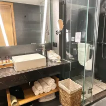시설: 아주 새로운 자동 커튼 워시렛 호텔의 스타일도 좋고 세면도구도 브랜드 제품입니다.