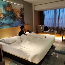 서비스: 로봇서비스가 너무 좋습니다. 체크인하는 아이들이 있어서 프론트에 전화해서 슬리퍼를 추가로 달라고 했더니 몇분뒤에 로봇이 가져다 주더라구요. 아이들이 주도적으로 문을 열어주고 받아주더라구요. 그들은 그것을 매우 좋아했습니다.