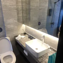 겉으로 얼핏보면 깔끔해 보이는듯 하나 샤워부스에는 물때가 끼어있어서 씻기에 찜찜함을 느끼게하고, 무엇보다 환기도 잘 안되는 것 같고 먼지가 굉장히 많고 너무나도 건조했어요.