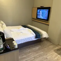 시설: 객실의 가성비가 정말 형편없었습니다. 관광 성수기임에도 불구하고 객실 크기가 방 크기에 비해 너무 작았습니다. 짐이 있는 분들은 주의하셔야 합니다. 짐이 들어가지 않을 수도 있습니다.