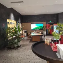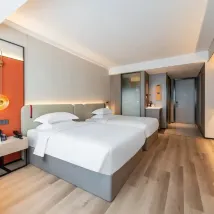 호텔 교통편은 좀 불편했습니다. 오고 갈 때마다 콜택시를 불러야 했어요. 숙박 환경은 쾌적했지만, 객실 전화는 로봇이 전화 걸 때만 사용 가능했고, 프런트와 연결되지 않아 사실상 무용지물이나 다름없었습니다. 객실에 있던 백차 티백은 정말 맛있었어요!! 옆방에 묵었던 엄청 활동적인 아이가 계속 스마트 커튼을 열고 닫으라고 말하는 소리 때문에, 저희 방 스마트 시스템도 이를 감지해서 이른 아침부터 갑자기 계속 커튼이 열리고 닫혔습니다. 게다가 시스템이 갑자기 '네~' 하고 소리를 내는 바람에, 아직 잠이 덜 깬 제가 정말 깜짝 놀랐네요!!! 프런트의 안경 쓴 남자 직원분은 서비스 태도가 정말 훌륭했습니다! 상하이 스타디움에서 콘서트 관람 예정이시라면, 이곳을 예약하는 것이 최고의 선택일 거예요!