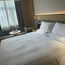這次住全季真的挺驚喜的!一進門就聞到那股熟悉的茶香,瞬間放鬆下來。房間不算特別大,但收拾得乾乾淨淨,原木色調看着很舒服。床品真心不錯,躺下去軟硬剛好,一覺睡到鬧鐘響都沒醒。 最喜歡早上那杯免費現磨咖啡,香濃程度不輸咖啡館~前台小哥幫忙寄快遞的時候還特意多給了幾個紙箱,貼心得很!周邊不算熱鬧,但拐個彎就有便利店和早餐鋪子,煙火氣十足。下次路過肯定還會選這兒,像換個城市住朋友家一樣自在~
