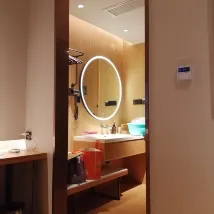 房間衞生不錯,住的也還舒服。就是洗手枱水龍頭聲音有點大,隔壁都能聽的清清楚楚。客房可能由於內窗的緣故,信號不太好。移動信號斷斷續續,無線也不是太穩定。室內小圓桌很不錯,設計合理,辦公寫字吃東西都很方便,也很好打理。早餐很豐盛,口味很好
