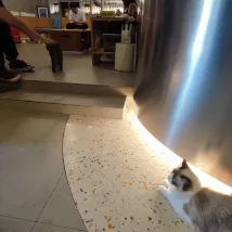 새끼 고양이들은 매일 아침 상쾌해집니다. 어느 날, 새끼 고양이 한 마리가 문을 열자마자 집 안으로 들어오려고 했습니다. 고양이를 무료로 만져볼 수 있습니다. 공용 구역에는 작은 소파가 있고, 그 위에 고양이 장난감이 놓여 있습니다. 새끼 고양이들은 당신이 만지도록 허락합니다. 그들은 모두 성격이 매우 좋습니다. 파란색 영국 짧은 머리 고양이는 약간 소심합니다. 가끔 당신이 가면 그는 도망갈 거예요. 래그돌은 매우 온순합니다. 충전할 수 있는 공간이 있는 공용 테이블이 있습니다. 테이크아웃해서 먹을 수는 있지만, 객실로 가져갈 수는 없습니다. 밖에는 테이크아웃을 위한 특별한 테이블이 있습니다. 무료로 짐을 공공장소에 보관할 수 있으며, 안내 표지판을 받으실 겁니다. 저는 3일 동안 머물렀는데 프런트 데스크에서 나쁜 태도를 보인 적이 없습니다. 하지만 프런트 데스크 직원이 매일 바뀌기 때문에 제가 그런 태도를 보지 못했을 수도 있습니다.