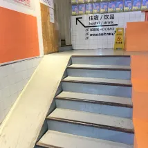 또한, 이 호텔 입구까지는 계단이 3개나 있어서 큰 짐을 가지고 계신 분들은 조금 힘들 수 있지만, 프런트에 도움을 요청하시면 된다는 안내판이 있습니다.