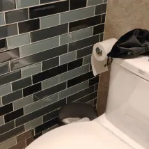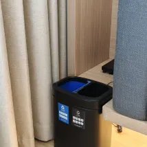 ❌ 방 전체에 세면대 근처 구석에 휴지통이 하나뿐이었는데, 세면대 근처에는 쓰레기통이 없었어요. 쓰레기를 버리려면 창가에 있는 쓰레기통까지 가거나 변기 옆에 있는 쓰레기통에 버려야 했는데, 둘 다 너무 불편했습니다. 세면대에서 창가까지는 방의 거의 대각선 거리였어요.