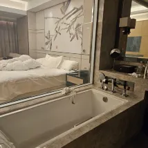 목욕 타월은 더럽고, 아무도 처리해 줄 사람이 없었습니다. 그들은 책임을 회피했습니다. 낡은 타월은 새 것으로 교체해 주었지만, 낡은 타월은 가져가지 않았습니다. 체크아웃할 때 보증금을 빼고 타월이 손상되었다고 주장했습니다. 확인 후, 그들은 우리가 잘못된 방으로 신고했다고 말했습니다. 그날 저녁, 환불을 요청했지만 호텔은 뷔페 쿠폰 두 장을 받고 합의서에 서명하라고 요구하며 거부했습니다. 정말 믿을 수 없는 경영진이었습니다.