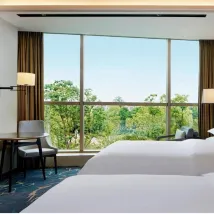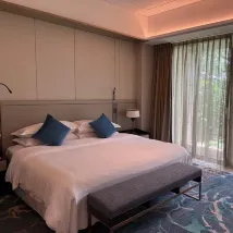 토요일 일찍 도착했는데, 정오쯤 체크인할 수 있을 줄은 몰랐습니다. 프런트 데스크 서비스는 매우 좋았고, 비비안이라는 매니저가 위챗을 추가해서 많은 소통을 해주었습니다. 장쑤성과 저장성의 여러 메리어트 호텔과 비교했을 때, 방이 오후 4~5시쯤에야 준비가 되어서 매우 좋았습니다. 이번에는 가든뷰 객실에 묵었는데, 꽤 넓고 아담한 정원이 있었습니다. 다만 여름에는 모기가 많았습니다. 고층에 사는 친구들은 그래도 멀리까지 볼 수 있었습니다. 하지만 1층은 퀴퀴한 냄새가 강했고, 이러한 피드백을 통해 비비안은 개선이 필요하다는 희망을 갖게 되었습니다.