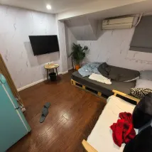 침대 밑에 이전 사용자가 남긴 비닐봉지가 있습니다. 방에는 창문이 없고, 눅눅합니다. 벽에는 곰팡이가 피었고, 방에는 퀴퀴한 냄새가 납니다. 방이 매우 낮아서 살기가 답답하고 매우 불편합니다. 개선의 여지가 있습니다.