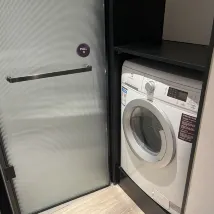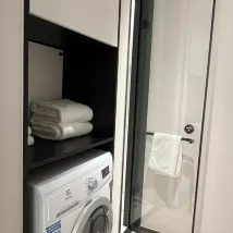서비스 아파트라곤 해도 세탁기까지 있는 곳은 드물었는데 여긴 세탁기에 다리미판도 구비되어 있고, 냉장고는 미니 사이즈가 아니라 보급형에 가까운 가정용 냉장고 같았어요. 냉동 기능 빵빵함! 인덕션은 장식인가 싶었는데 실제로 작동되었고, 전자레인지도 요긴하게 잘 썼습니다.